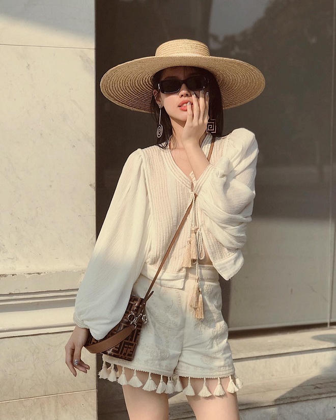 Một chiếc mũ cói vành rộng vẫn luôn là lựa chọn an toàn cho mọi chuyến đi du lịch. Ngoài việc bảo vệ làn da, chiếc mũ rộng vành này còn mang đến vẻ ngoài bí ẩn và dịu dàng cho các sao Việt.