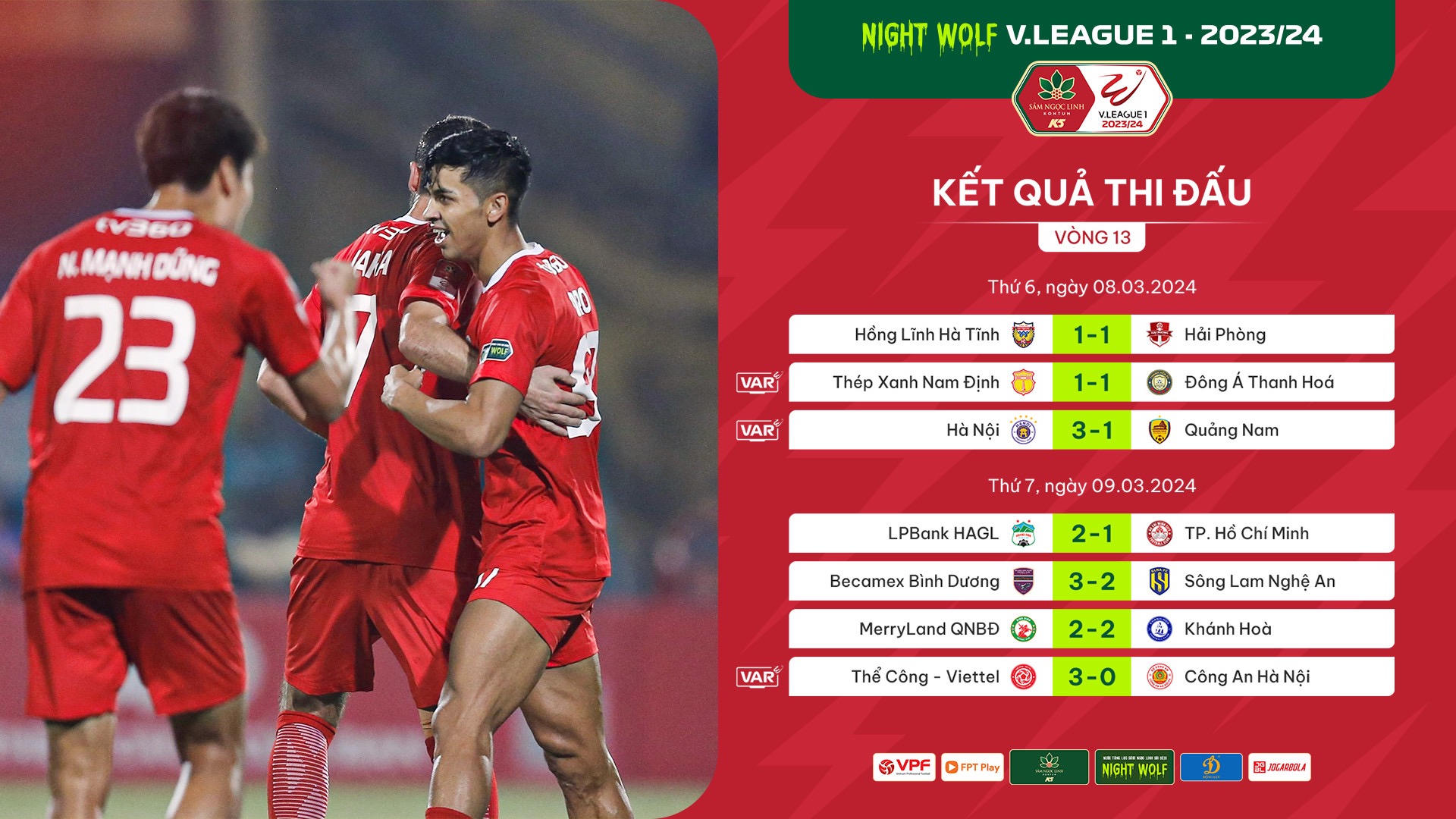 Không chỉ chứng kiến kỷ lục về số lượng khán giả tới sân cũng như số bàn thắng ghi được, vòng 13 Night Wolf V.League 2023/24 còn chứng kiến sự trở lại của những tên tuổi lẫy lừng một thủa.