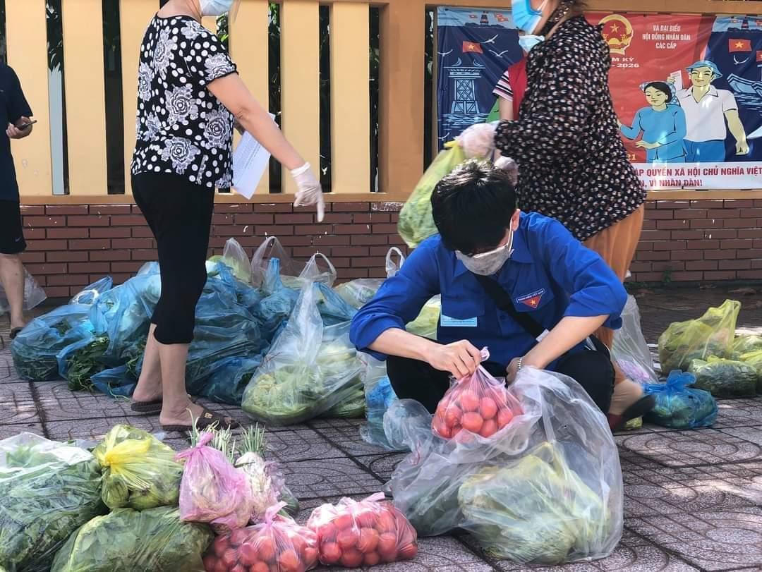 Các gia đình liên hệ qua điện thoại, các thanh niên tình nguyện mua hàng và giao đến cho các hộ gia đình.