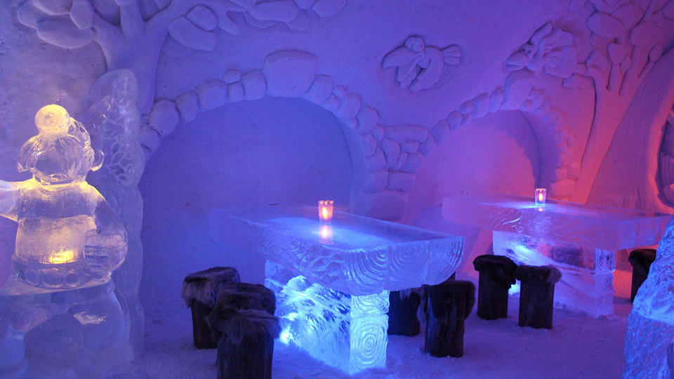 Snow Village, Lapland, Phần Lan: Snow Village là một điểm đến thú vị nằm cách Vòng Bắc Cực khoảng 200 km, được xây dựng hàng năm khi nhiệt độ giảm xuống dưới 0 độ C. Snow Village bao gồm một khách sạn băng tuyết có hệ thống phòng nghỉ, quán bar, nhà hàng cùng những hành lang ấn tượng được làm từ băng đá. Tham quan Snow Village là một trải nghiệm thú vị và hấp dẫn dành cho du khách. Ảnh: Nordicvisitor Lapland.