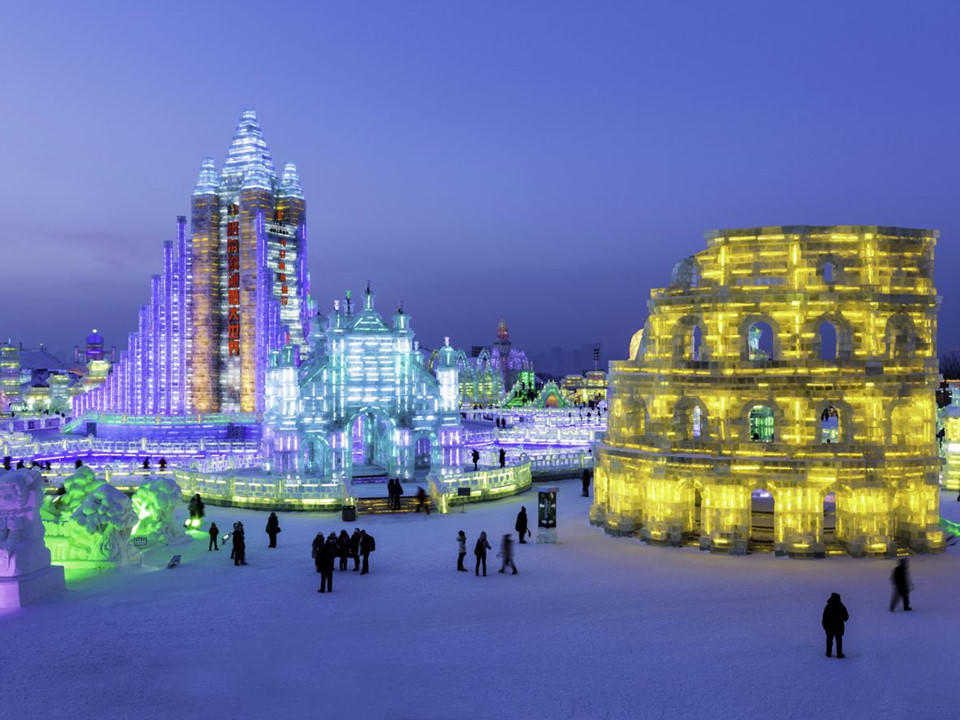 Lễ hội băng đăng quốc tế, Cáp Nhĩ Tân, Hắc Long Giang, Trung Quốc: Lễ hội Băng đăng Quốc tế tại thành phố Cáp Nhĩ Tân là một trong những lễ hội băng tuyết lớn nhất thế giới, được tổ chức lần đầu vào năm 1963. Các tác phẩm điêu khắc đá trong lễ hội được chạm khắc từ những khối băng lớn lấy từ bề mặt sông Tùng Hoa. Các nhà điêu khắc cố gắng tạo ra những tác phẩm nghệ thuật sáng tạo như các tòa nhà, động vật hay các sinh vật huyền bí khác. Lễ hội băng đăng thường bắt đầu vào ngày 5/1 hàng năm, hoặc có thể sớm hơn tùy theo thời tiết. Ảnh: Booking.
