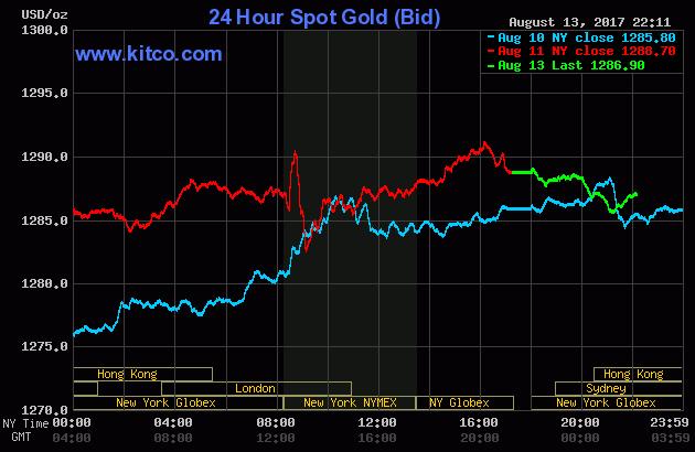 Kết thúc phiên giao dịch cuối tuần giá dừng tại mức 1.288,95 USD/ounce. Khủng hoảng chính trị Nga – Mỹ và Mỹ - Triều Tiên đang khiến nhà đầu tư quan tâm. Trong khi đó, Fed vẫn thận trọng trong việc tăng lãi suất.