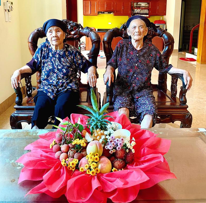 Sáng nay cụ bà hàng xóm (bên phải) sang thăm bà của Thu. Hai cụ ngồi "tám chuyện" ngày ngày thưở xưa hay được mẹ cho bát rượu nếp ú ụ, bảo rằng ăn để giết được con sâu trong bụng. Hồi ấy quà bánh ít, đứa trẻ nào cũng chỉ mong đến ngày này để được ăn bát rượu nếp cay ngọt.