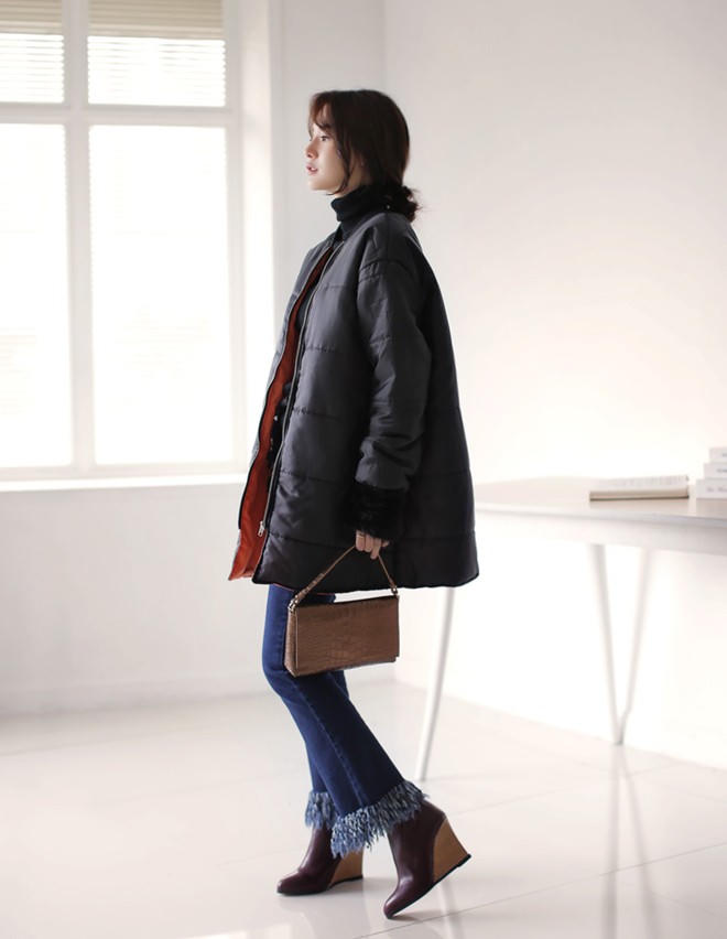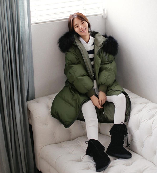 | Trong những ngày nhiệt độ xuống tới 10 độ C thì mẫu áo lông vũ dáng dài kết hợp bốt cao cổ sẽ giúp giữ ấm cho cơ thể đồng thời mang lại vẻ năng động cho người mặc. |