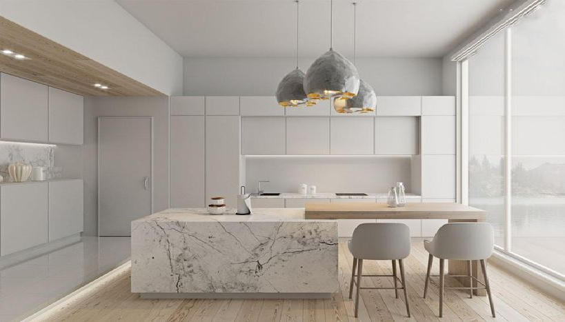 Với nhà bếp có diện tích lớn, các gia đình hiện nay thường sử dụng bàn đảo kê giữa phòng, thuận tiện cho việc sơ chế đồ ăn. Trong nhiều trường hợp, bàn đảo cũng có thể được biến hóa thành bàn ăn một cách nhanh chóng, tiện lợi.