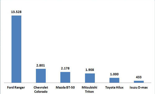 Ford Ranger thể hiện ưu thế vượt trội so với các đối thủ còn lại. |