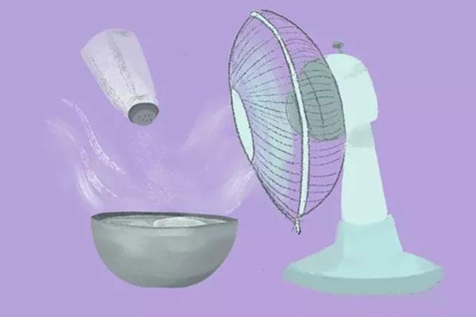 Sử dụng nước và muối làm đá rồi đặt trước quạt. Muối sẽ làm cho đá không bị tan nhanh khi đặt trước quạt. Ảnh: sohu.