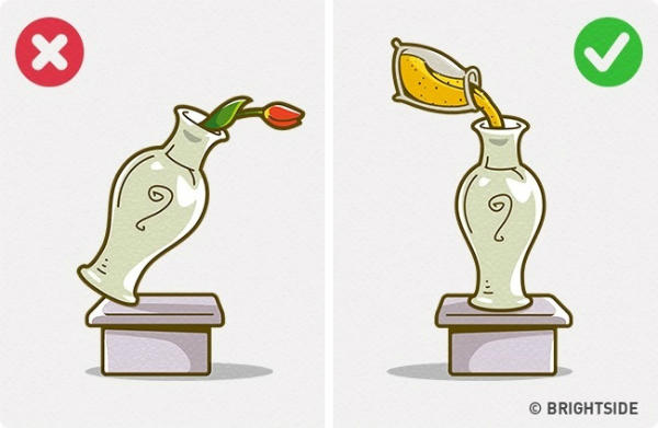 Để chiếc lọ lục bình trưng bày không bị nghiêng ngả, hãy đổ một lượng cát vào bên trong để tăng trọng lượng.