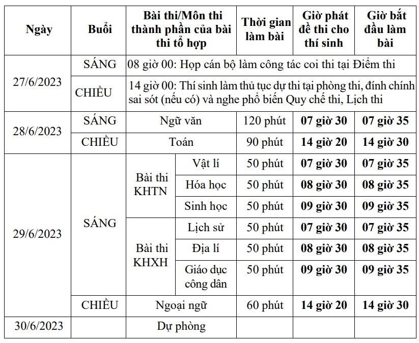 Chi tiết lịch thi tốt nghiệp THPT 2023. |
