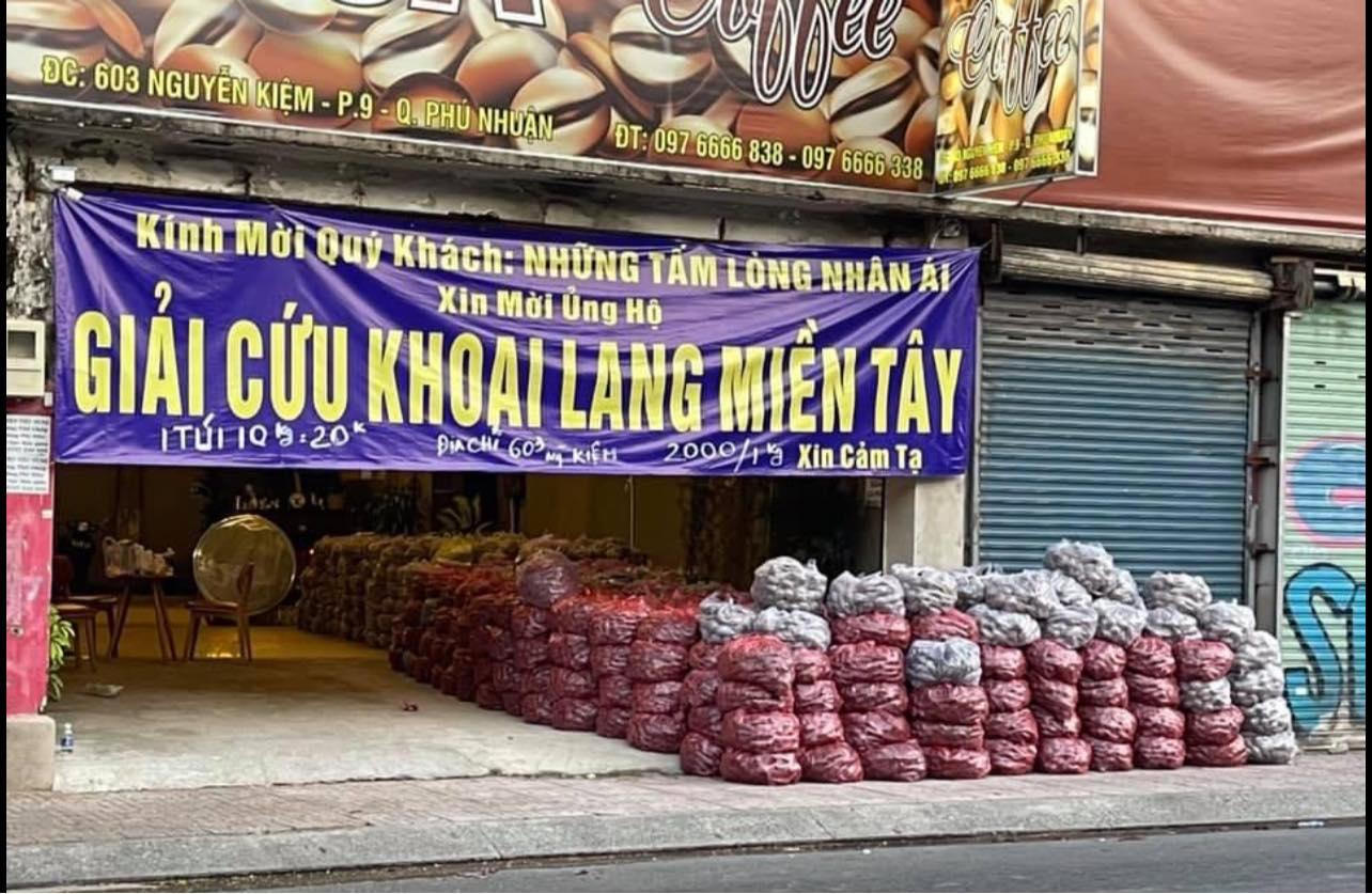 Khoai lang tím bán “giải cứu” ở Sài Gòn có giá trung bình từ 5 - 6 ngàn đồng/kg. Tuy nhiên, lượng khoai nhiều quá nên vẫn cần rất nhiều người “giải cứu”. Mới đây, một cửa hàng tại đường Nguyễn Kiệm đã căng biển kêu gọi “giải cứu” khoai lang tím với giá chỉ 2 ngàn đồng/kg. Nhiều cư dân mạng đã bày tỏ nỗi xót xa: “Giá rẻ như thế thì làm sao thu hồi công sức trồng khoai đây?”. Sau khi đăng tải thông tin, lượng người liên hệ qua mạng để mua khoai ở cửa hàng nói trên rất đông, không ít người trả tiền cao hơn giá bán để “ủng hộ nông dân”.