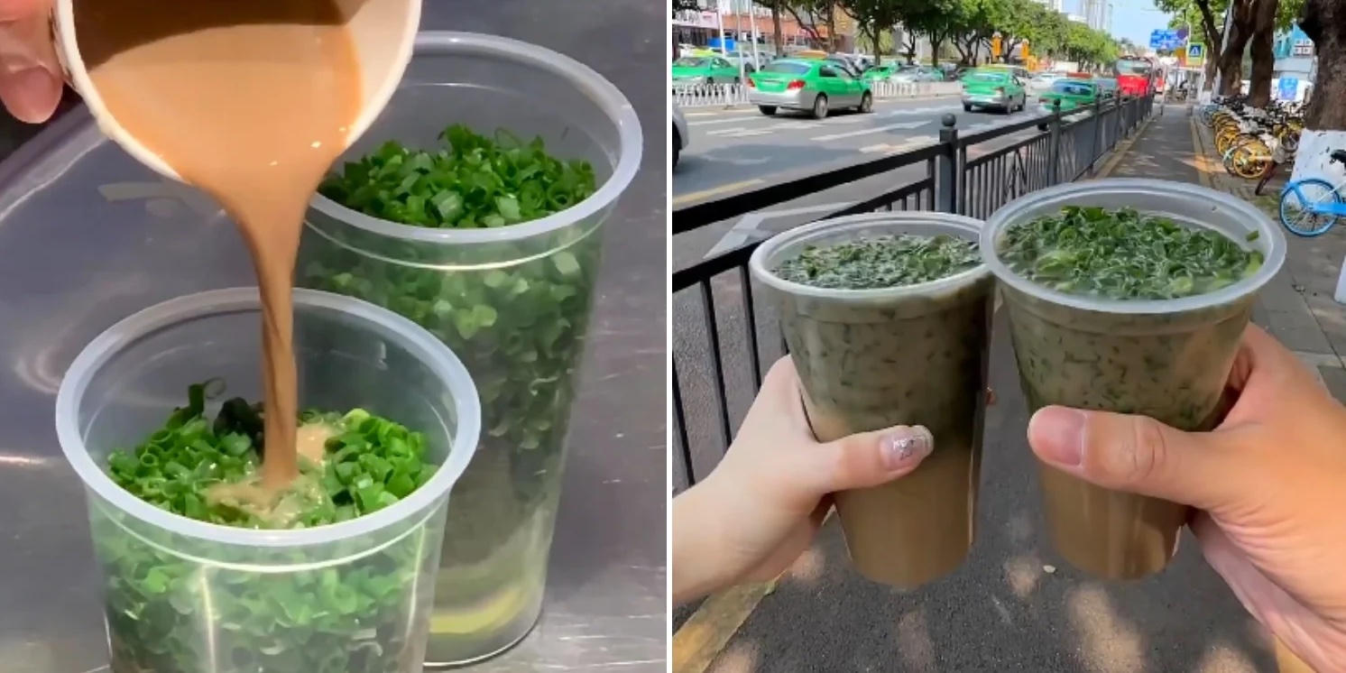 Món cà phê trộn hành lá bắt đầu lan truyền rộng rãi trên mạng xã hội Trung Quốc vào 5/2024, khi truyền thông châu Á rầm rộ đưa tin về sự xuất hiện của loại đồ uống này. Một số tờ báo gọi thức uống này là một trong những sự kết hợp đáng ngạc nhiên nhất từng được thử nghiệm. Theo những video được đăng tải, để pha chế món đồ uống kỳ lạ này, trước tiên bạn cần nghiền một chút hành lá đã cắt nhỏ ở đáy cốc, thêm đá, sữa tươi và cà phê. Cuối cùng, một lớp hành lá thái nhỏ sẽ được phủ lên trên. Ảnh: Oddity Central