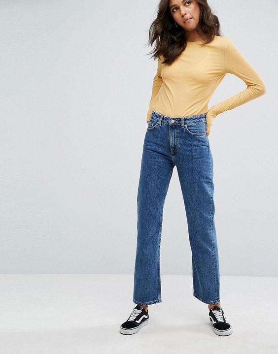 Quần jeans dáng cơ bản: Không còn quần kiểu quần jeans ôm sát, quần rách bụi bặm hay trang trí hoa văn cầu kì nữa, năm 2018 là thời điểm để những chiếc quần màu xanh và phần ống đứng cơ bản lên ngôi.