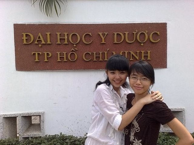Sau đó, Tóc Tiên thi đỗ ĐH Y Dược. Trong một bức hình chụp cùng các bạn, Tóc Tiên và một cô bạn nổi bật khi bỗng dưng không khoác áo blouse trắng.