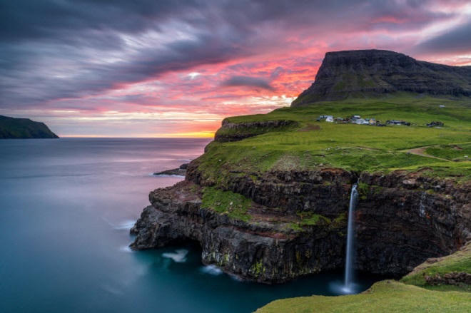 Gásadalur, quần đảo Faroe: Ngôi làng Gásadalur chỉ có 18 cư dân vào năm 1012. Để tiếp cận ngôi làng, du khách phải vượt quá lối đi độc đạo ngược lên vách núi cao 400m.