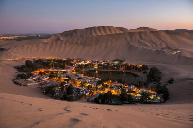 Huacachina, Peru: Ngôi làng Huacachina được xây dựng xung quanh một hồ nước tự nhiên nhỏ trong sa mạc Peruvian. Nó còn được gọi với tên khác là "ốc đảo của châu Mỹ"