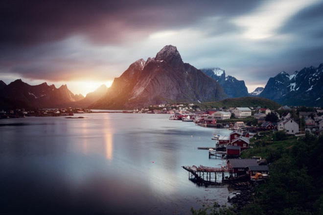 Reine, Na Uy: Quần đảo Lofoten có nhiều làng chài đẹp như tranh vẽ được bao quanh bởi những ngọn núi hùng vĩ và Reine là một trong số đó.