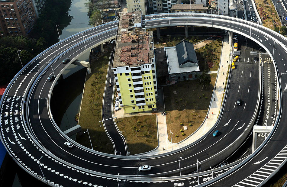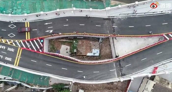 Ở Quảng Châu, các nhà chức trách đã phải xây dựng một đường vòng quanh khu nhà này vì có ba hộ gia đình nhất quyết không chịu chuyển đi. Không rõ đến năm 2023 ngôi nhà còn tồn tại hay không.