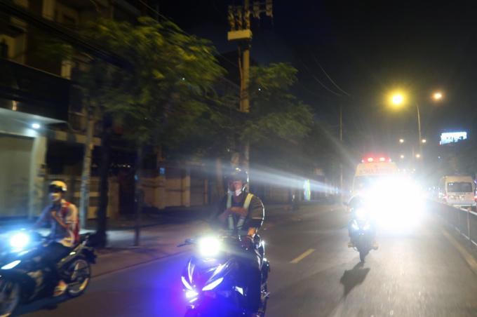 Chuyến dẫn đường cho xe cấp cứu tối 9/5 bắt đầu. Ảnh: Tuệ Minh.