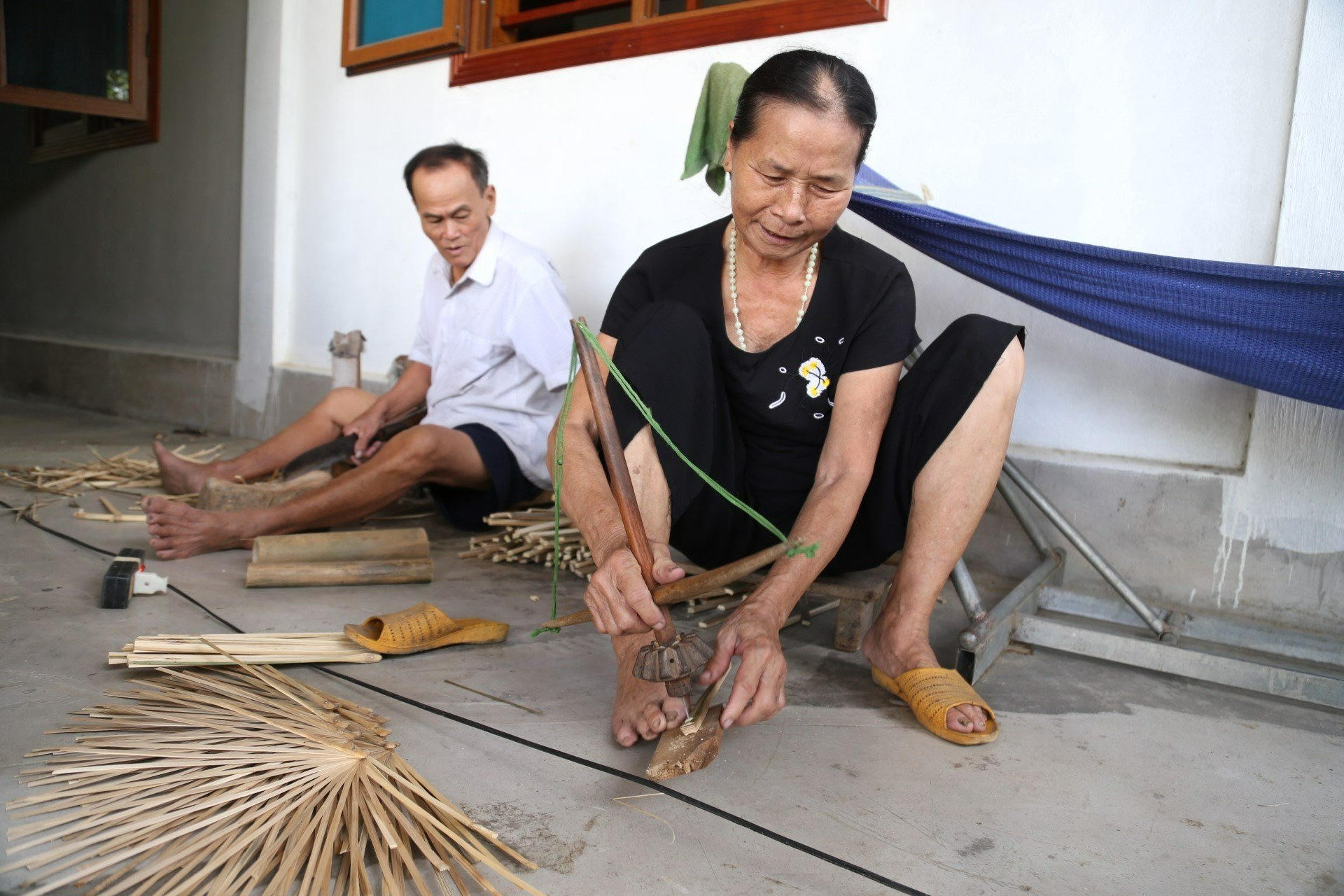 Theo bà Nguyễn Thị Thu (vợ ông Trung), nghề này không quá vất vả nhưng trải qua nhiều công đoạn và đòi hỏi sự tỉ mỉ, công phu. Tính sơ sơ để làm một chiếc quạt giấy phải trải qua 32 công đoạn.