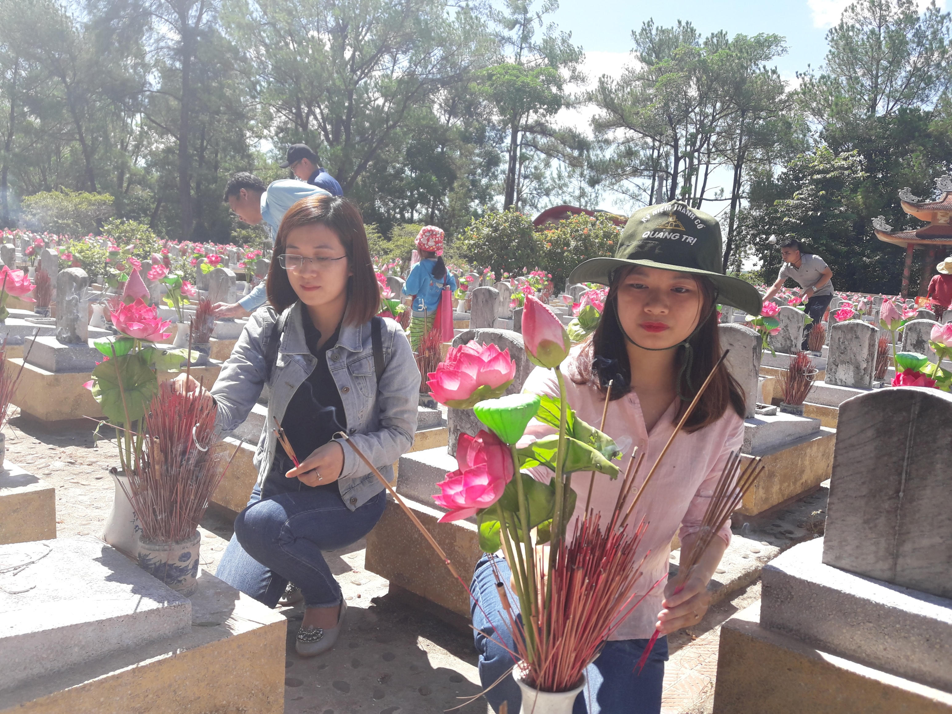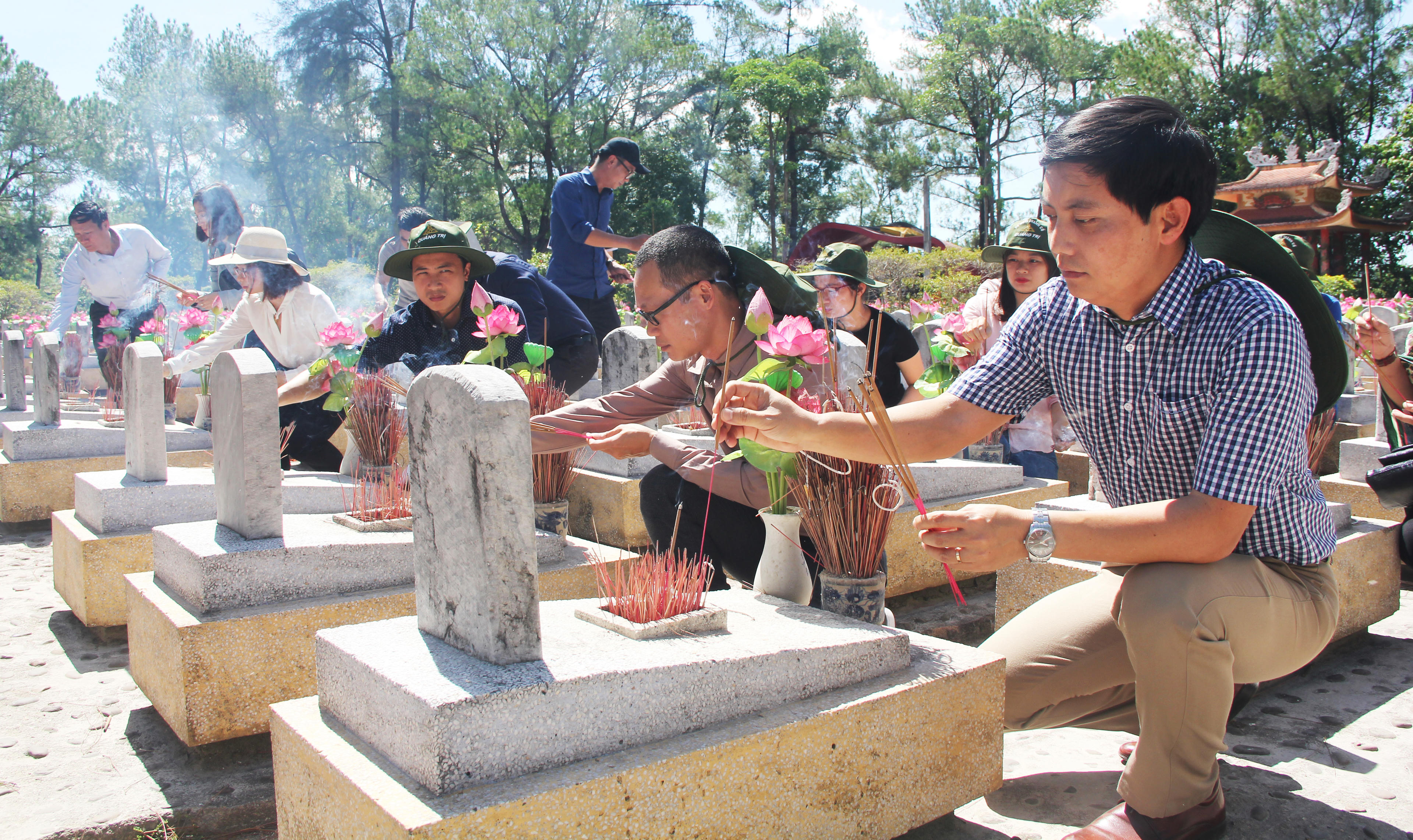 Chuyến đi năm nay, Báo PLVN ưu tiên cho những phóng viên trẻ, trong đó có nhiều phóng viên lần đầu tiên đến với mảnh đất Quảng Trị. Các phóng viên ánh mắt rưng rưng, chia nhau từng nén hương rồi tỏa ra từng khu vực mộ, kính cẩn nghiêng mình tri ân trong cái nắng rát bỏng của miền Trung.