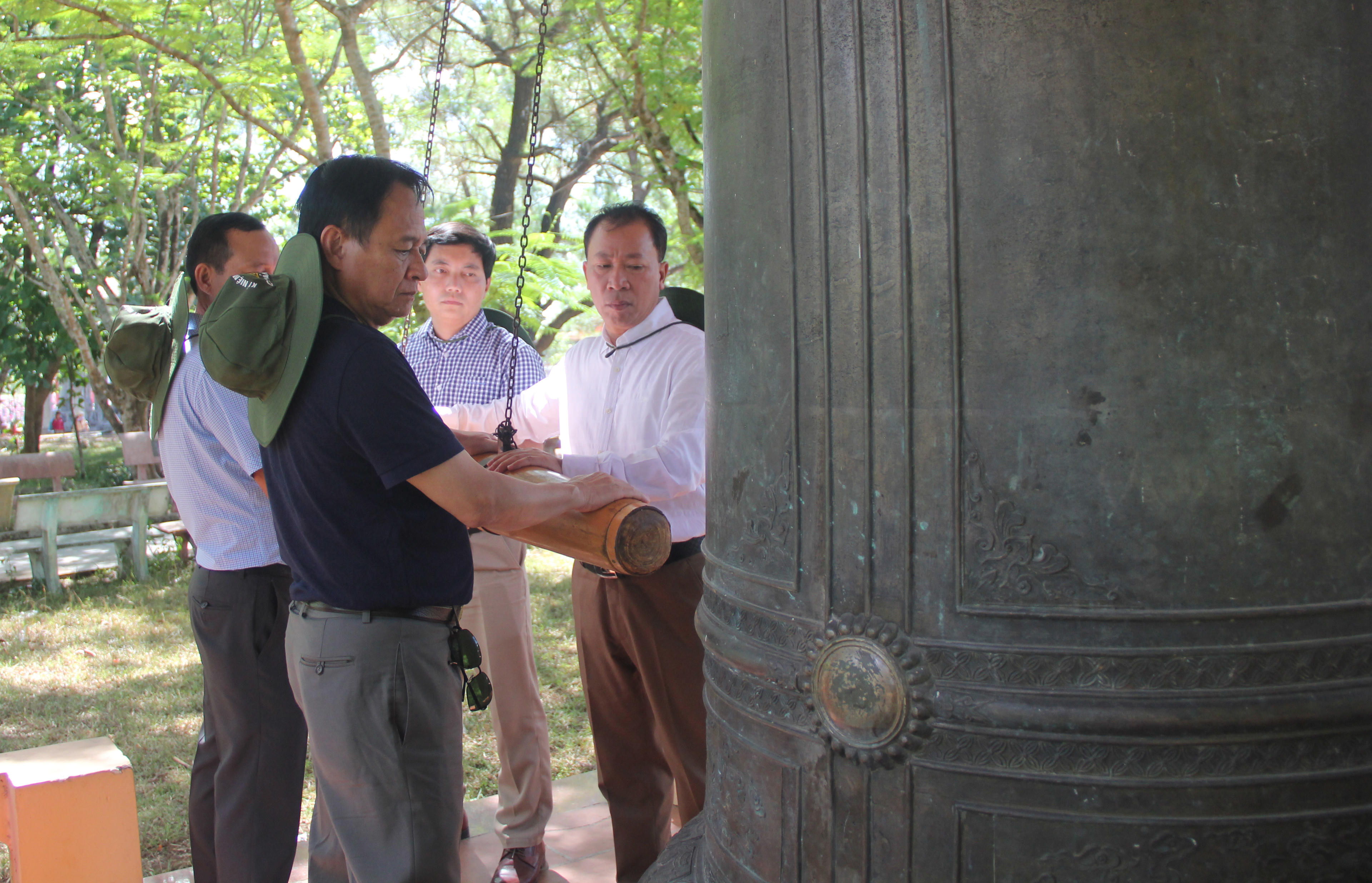 | Lãnh đạo Báo thỉnh chuông cầu nguyện cho linh hồn các anh hùng liệt sỹ tại Nghĩa trang Liệt sỹ Quốc gia Trường Sơn. |
