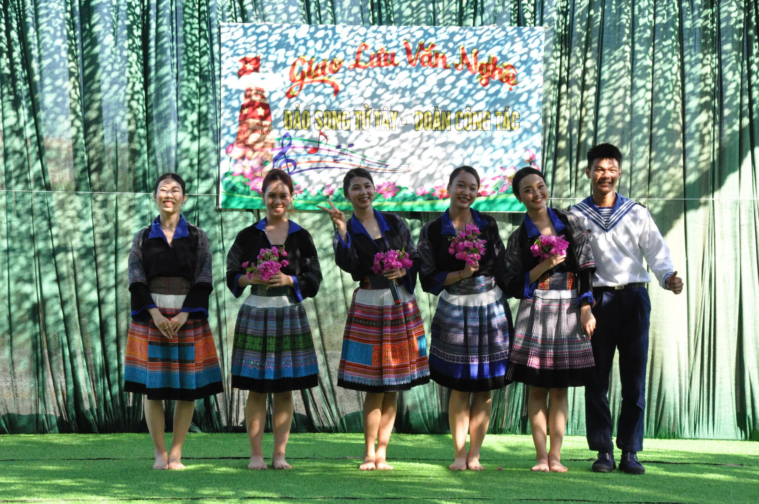 Đoàn giao lưu văn nghệ cùng các em học sinh trên đảo Trường Sa lớn |