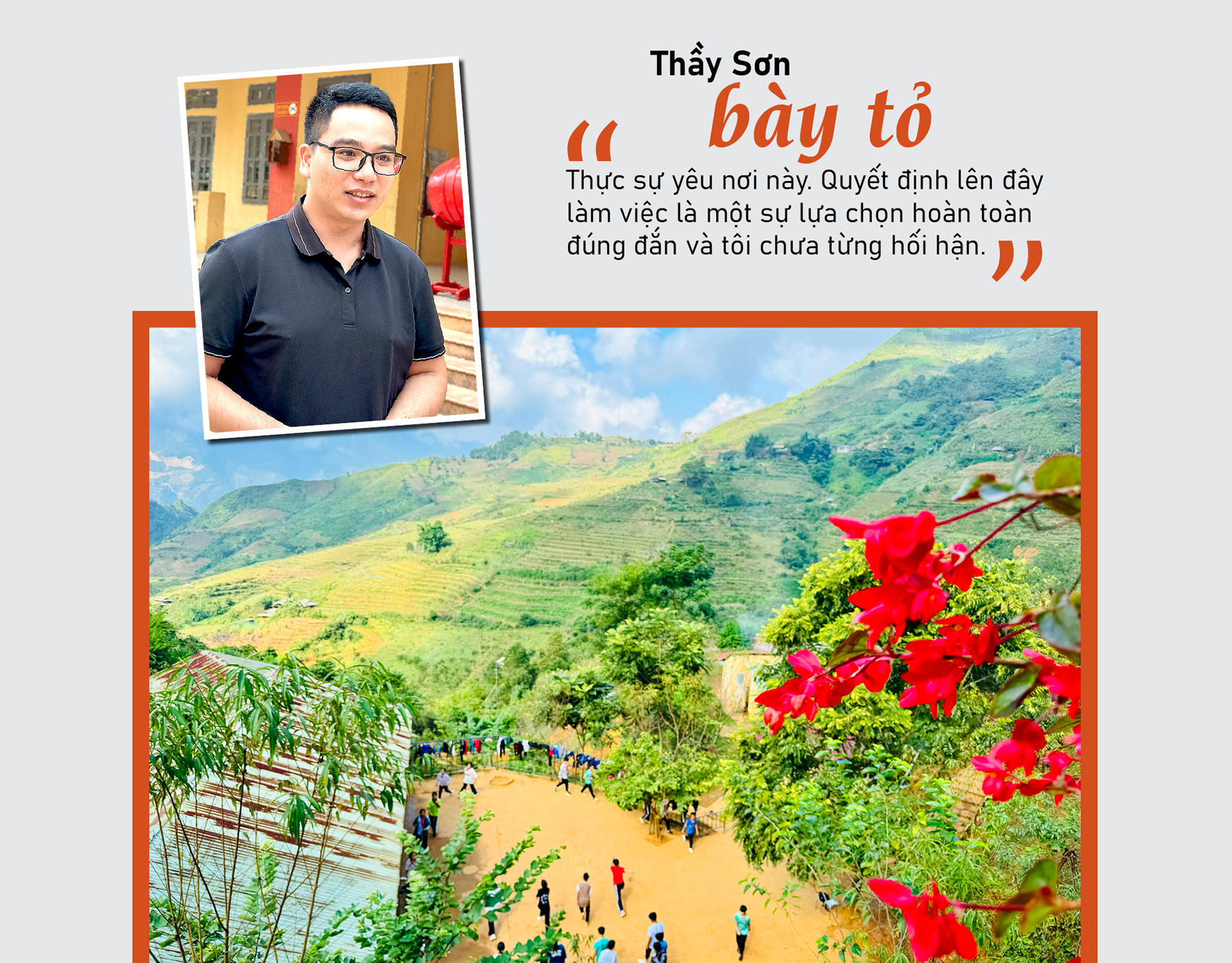 Chia sẻ về quyết định, thầy Sơn nói: “Là một người con của Yên Bái, sau khi học xong tôi mong muốn trở về quê hương để đóng góp cho sự phát triển của sự nghiệp giáo dục tỉnh nhà. Sau đó tôi quyết định chọn Trường phổ thông Dân tộc bán trú Tà Xi Láng là nơi để gắn bó. Tất nhiên bất cứ ai cũng mong muốn chọn một công việc thuận lợi, nhưng lý tưởng sống của tôi đó là tuổi trẻ phải sống và cống hiến hết mình, dám dấn thân nên tôi đã chọn lên Tà Xi Láng để cống hiến tuổi thanh xuân”.