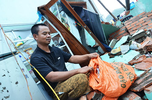 Bốn đứa trẻ của gia đình đang ở nhờ nhà bà con. Nhưng người cha, người chú như anh còn đang không biết làm gì với đống gạch vụn, ngói vỡ ngổn ngang. "Dọn gì bây giờ. Tôi không biết phải bắt đầu từ đâu cả. Còn xây nhà mới thì không biết kiếm tiền đâu ra", anh thở dài.