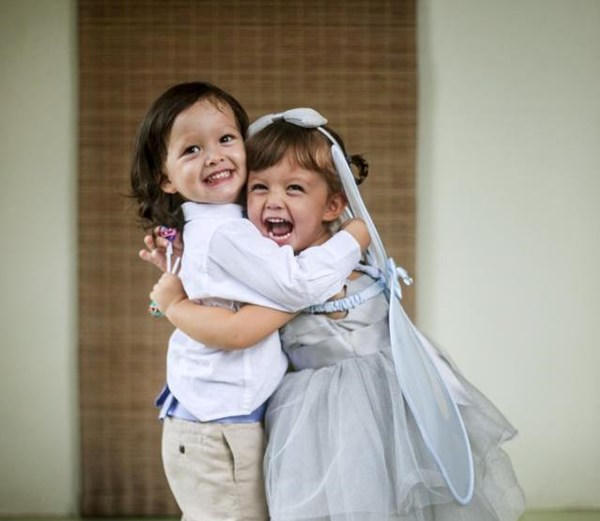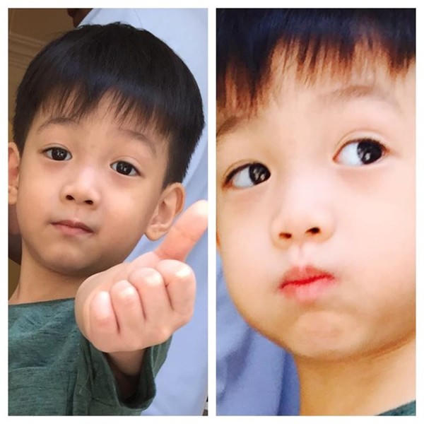 Bé Tôm và Tép (tên gọi ở nhà của hai con) thừa hưởng nét đẹp của cả bố và mẹ và rất kháu khỉnh, đáng yêu.