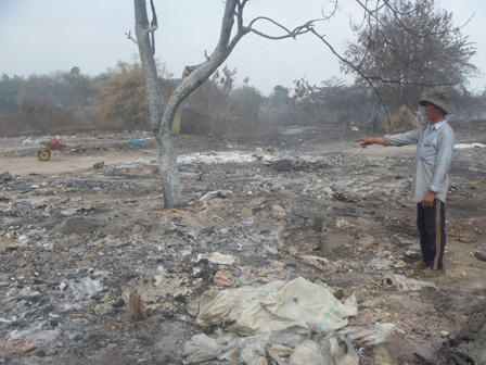 Hôm đó gió mạnh, sẵn tiết trời hanh khô nên lửa bén nhanh, lan rộng ra toàn bộ khu vực bãi rác rồi tạt lên 5 căn nhà nơi vợ chồng anh cùng 4 hộ khác đang sinh sống. Đến khoảng 12h, ngọn lửa đã được khống chế, tuy nhiên toàn bộ tài sản đã bị thiêu rụi.