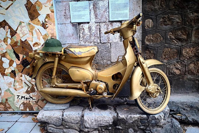 Ngoài bích họa, nhiều đồ vật như xe máy, cột điện, gánh hàng... cũng được bày trí khiến khung cảnh trở nên sống động hơn.
