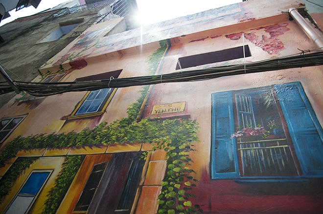 Bức tranh có dài 10 m, cao 5 m là ý tưởng của một người dân sống ở đây. Tranh được vẽ kéo dài từ đầu ngõ đến gần cuối ngõ trong vòng 10 ngày.
