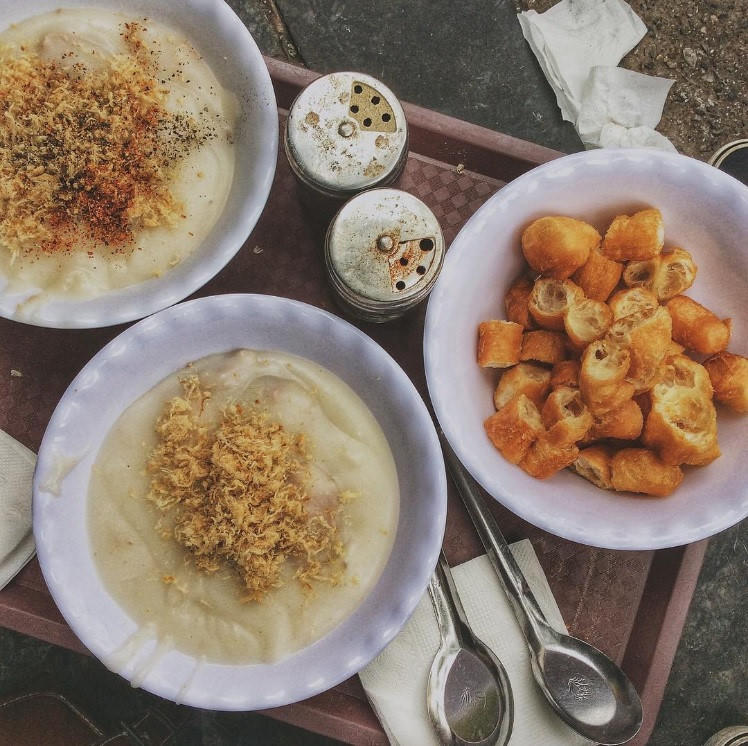 Cháo sườn sụn chợ Đồng Xuân là quán cháo ngon nhất nhì Hà Nội với nhiều lời khen ngợi. Bát cháo nóng hổi giá 30.000 đồng với nhiều sườn sụn, ruốc và quẩy giòn rụm. Ảnh: Kogmeng/Instagram.