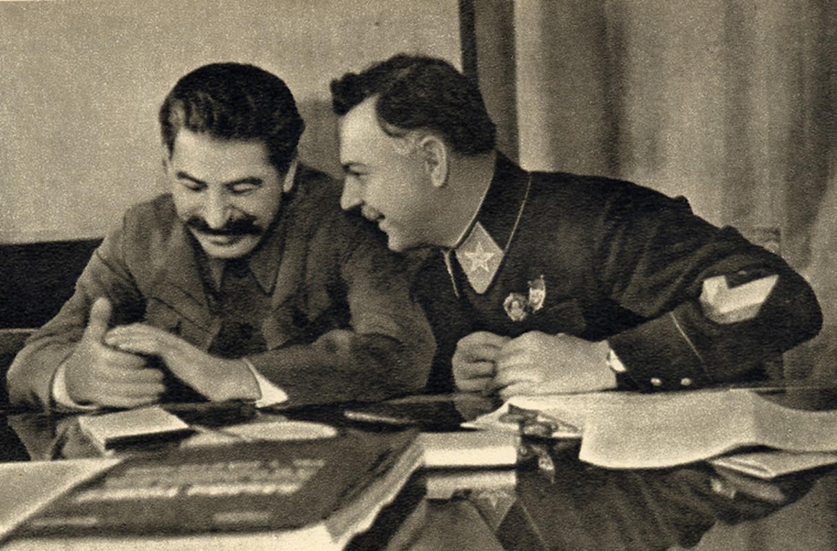 Năm 1950, Nguyên soái Liên Xô Kliment Voroshilov (bên trái) thông báo với thế giới rằng nước này đã phát triển bom nguyên tử. Sản xuất hàng loạt quả bom RDS-1 đã bắt đầu vào cuối năm 1951.
