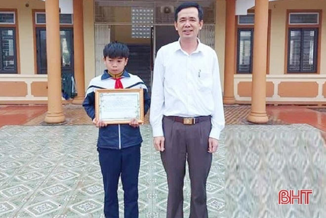 Cũng trong sáng nay, Ban Giám hiệu trường THCS Kỳ Khang (huyện Kỳ Anh, tỉnh Hà Tĩnh) đã tổ chức tuyên dương em Nguyễn Phước Thành (lớp 7E) trước toàn thể nhà trường về hành động nhặt được của rơi tìm người trả lại.