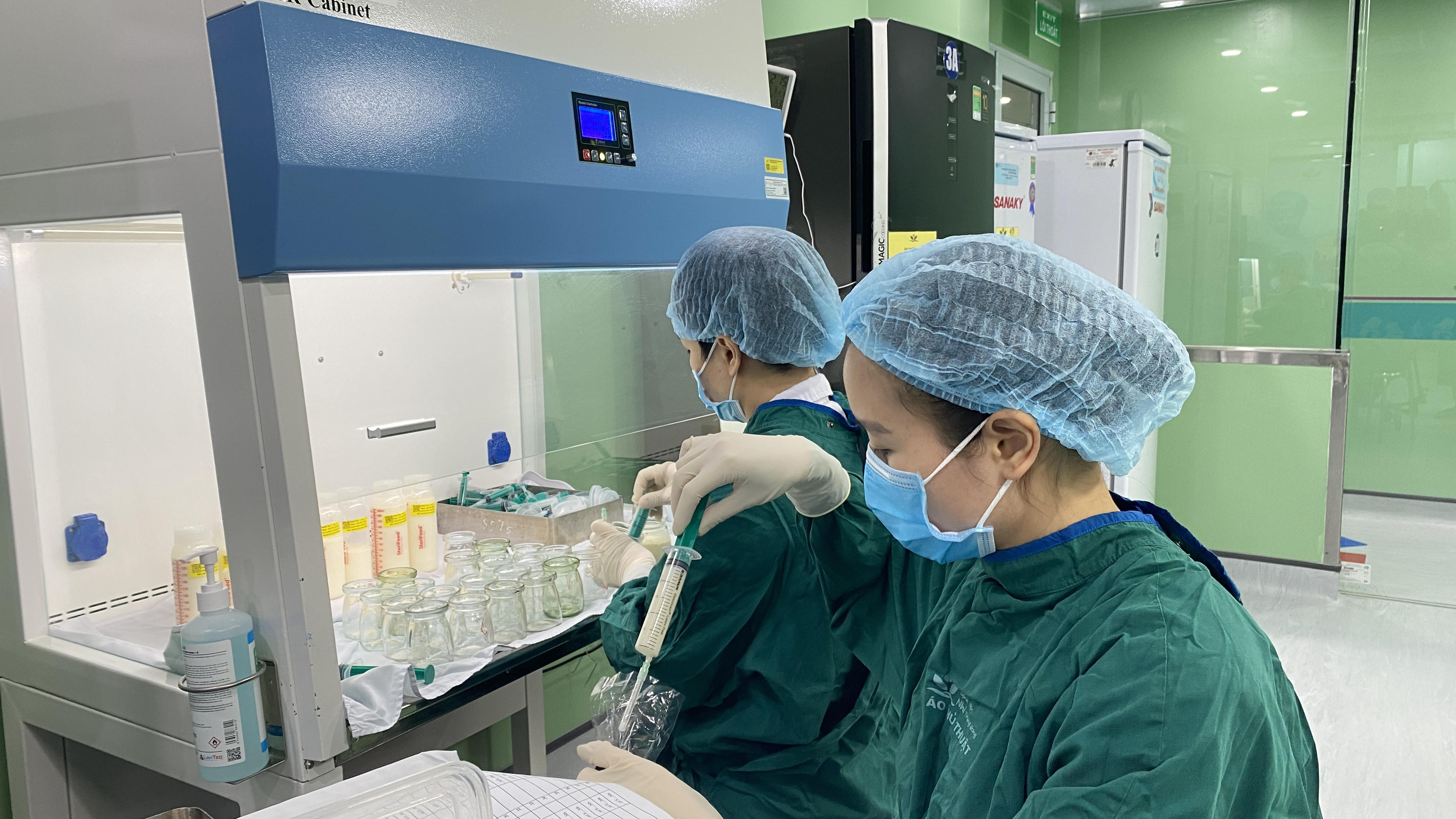 Điều dưỡng Hương kể: “Trước khi Ngân hàng sữa mẹ chính thức đi vào hoạt động, chúng tôi đã phải đi thu gom sữa của các bà mẹ, có mẹ nằm điều trị tại bệnh viện, có người ở ngoài cộng đồng. Mỗi ngày các điều dưỡng phân công đến từng nhà của các bà mẹ để gom sữa về bệnh viện tích trữ. Sau quá trình thanh trùng, xét nghiệm các bác sĩ mới chuyển xuống khoa, phòng cho các bé ăn”.
