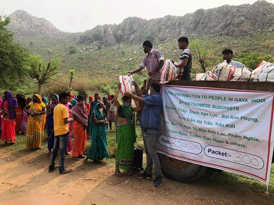 Người dân Ấn Độ hân hoan nhận quà thiện nguyện. |