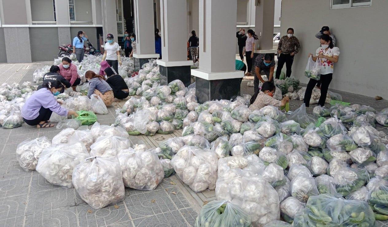 Ông Huỳnh Minh, Chủ tịch UB MTTQ Việt Nam huyện Long Điền cho biết, trước khi hỗ trợ người dân, anh chị em tình nguyện rửa sạch, đóng bao rau củ gọn gàng. |