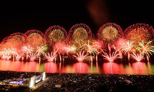 | Hàng triệu người xem pháo hoa ở bãi biển Copacabana, thành phố Rio de Janeiro, Brazil hôm 1/1/2016. Ảnh: AFP |