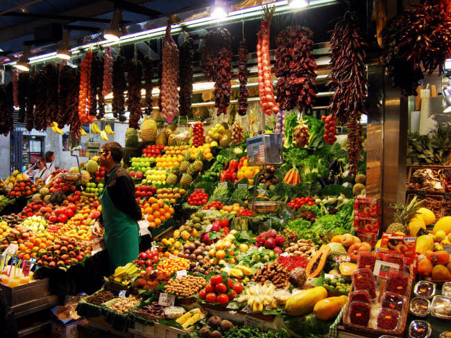 Khu chợ La Boqueria ở thành phố Barcelona, Tây Ban Nha.