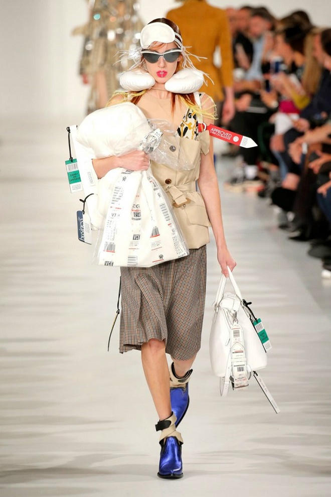Trong BST Xuân-Hè 2018, NTK John Galliano đã khiến cho giới điệu mộ bất ngờ và thích thú khi trình diễn những thiết kế lấy cảm hứng từ phụ kiện trên khoang máy bay. Từ các thẻ kiểm tra hành lý, gối cổ, mặt nạ mắt, cho đến mẫu túi xách được biến tấu từ phụ kiện gối ngủ trên máy bay… đều trở thành một phần của các mẫu mốt.