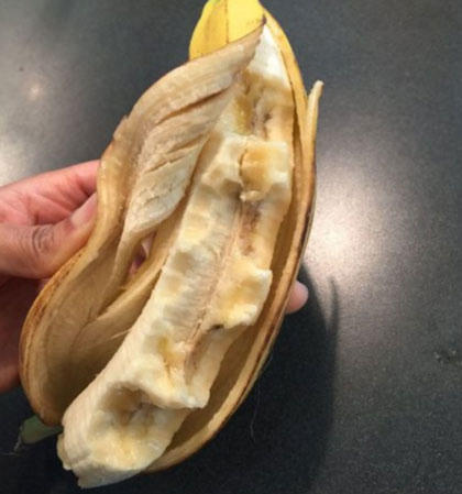 "Đây là quả chuối sau khi tôi bảo con rằng con chỉ cần ăn một nửa thôi cũng được". |