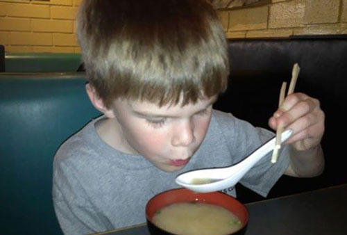 "Thằng bé đã dùng đũa để gắp thìa sau khi tôi nóicon có thể dùng hai thứ cùng lúc". |
