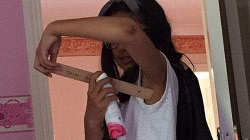 Trong hướng dẫn sử dụng chai xịt, người ta nói cần xịt cách người khoảng 15cm. Cô bé cẩn thận còn dùng cả thước kẻ để đo khoảng cách chính xác. |