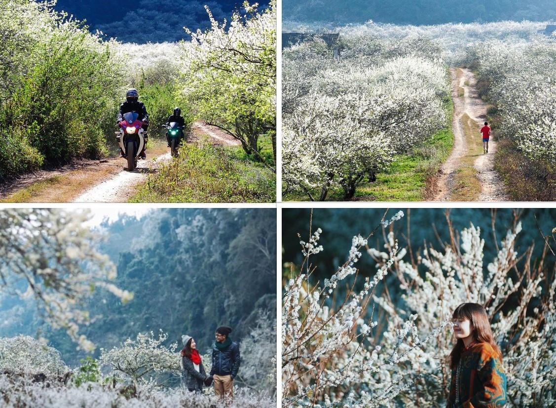 Ngay từ cuối tháng 1, cao nguyên Mộc Châu đã phủ đầy sắc trắng tinh khiết của hoa mận. Để được tận tay chạm vào những cánh hoa trắng li ti, các cặp đôi có thể đi sâu vào các làng bản như Tân Lập, Pa Phách, Lóng Luông, Phiêng Cành… Tới đây, chẳng cần thiết bị mà chỉ với điện thoại, du khách đã có thể chụp ảnh những bộ ảnh lãng mạn đẹp như cổ tích.