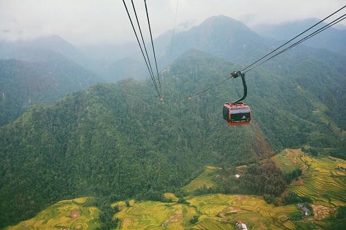 Đường tới “nóc nhà Đông Dương” chẳng còn gây khó dễ những người không đủ điều kiện sức khỏe hoặc ít phiêu lưu mạo hiểm. Thay vì chinh phục Fansipan bằng cách leo núi, bạn có thể mua vé khứ hồi cáp treo với chi phí 600.000 đồng, mỗi lượt chỉ mất gần 20 phút. Ngoài cột mốc và lá cờ đỏ sao vàng trên độ cao 3.143m, du khách còn có thể chụp nhiều bức ảnh đẹp trên cáp treo hoặc ở quần thể du lịch Fansipan Legend.