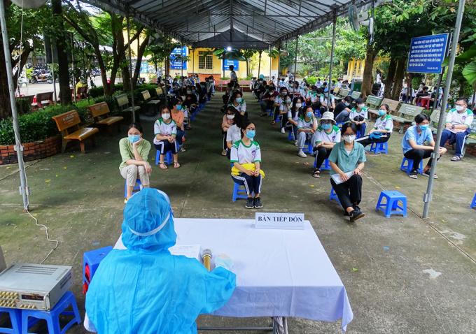Sáng nay, huyện Củ Chi chỉ tổ chức một điểm tiêm cho học sinh 3 trường là THPT Củ Chi, THPT Tân Thông Hội và Trung tâm giáo dục thường xuyên. Điểm tiêm được bố trí gần bệnh viện đa khoa huyện để đảm bảo điều kiện về y tế, theo dõi phản ứng của trẻ sau tiêm.