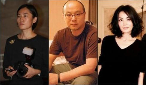 Vương Phi từng bắt quả tang người chồng đầu tiên - nhạc sĩ Đậu Duy - ngoại tình với nữ nhiếp ảnh gia Cao Nguyên ngay trong nhà mình. Năm 1996, khi đang ở trên đỉnh cao sự nghiệp, Vương Phi rời Hong Kong để đến Bắc Kinh sinh sống cùng Đậu Duy. Năm 1997, cô sinh cho anh con gái Đậu Tĩnh Đồng. Sau khi sinh con, Vương Phi trở lại Hong Kong hoạt động nghệ thuật còn chồng ở Bắc Kinh. Một hôm, vì muốn mang đến sự bất ngờ cho chồng, Vương Phi trở về nhà mà không báo trước và bắt gặp cảnh không mong muốn. Họ ly hôn tháng 12/1999. Trong hình (từ trái qua): Cao Nguyên, Đậu Duy và Vương Phi.