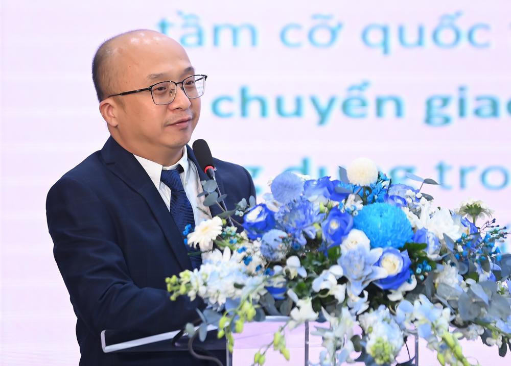 Bác sĩ Phương Lễ Trí, Giám đốc Điều hành Viện Nghiên cứu Tâm Anh, phát biểu tại buổi lễ. Ảnh: Bệnh viện Đa khoa Tâm Anh Hà Nội