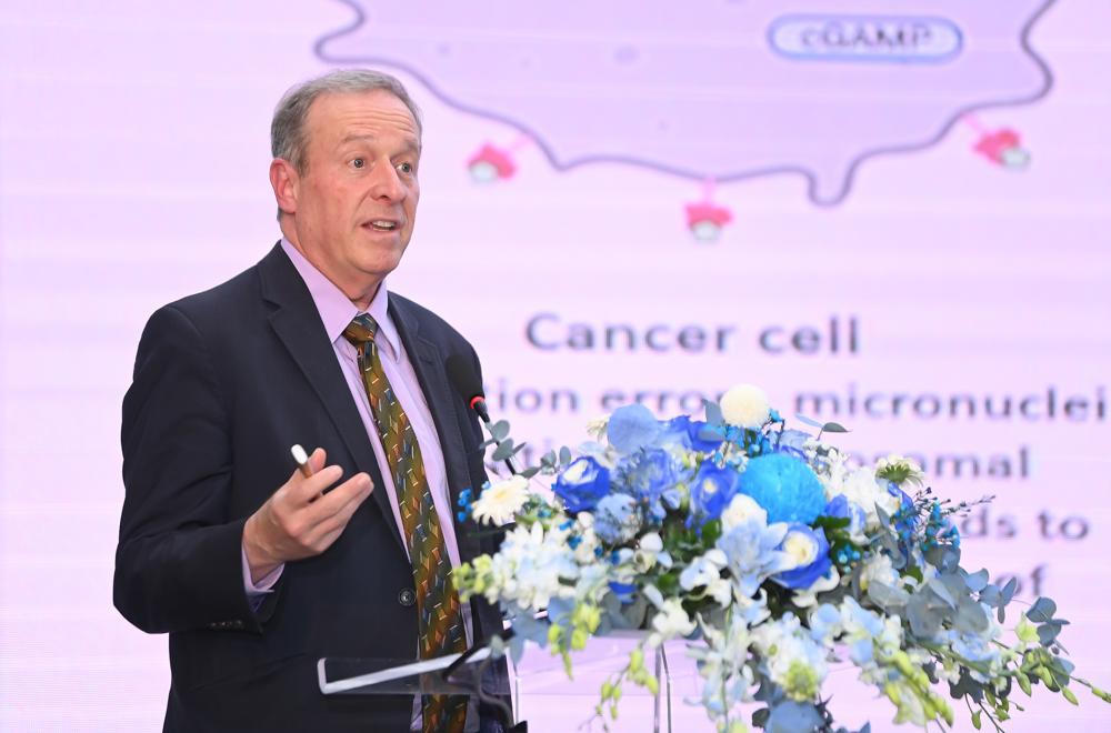 GS.TS.BS. Jeffrey S. Glenn đại diện nhóm chuyên gia nghiên cứu thuốc RBS2418 của Mỹ, phát biểu tại buổi lễ. Ảnh: Bệnh viện Đa khoa Tâm Anh Hà Nội